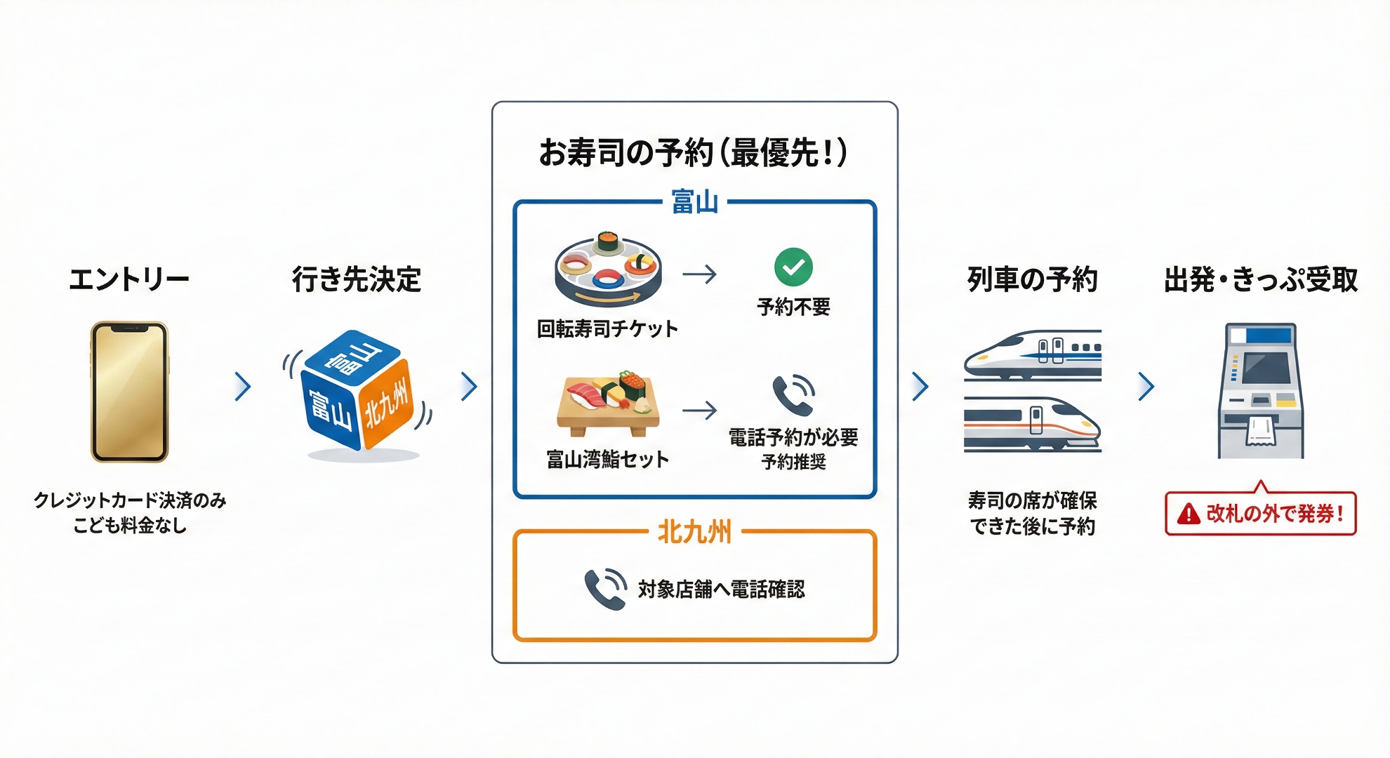 - 必要に応じて寿司店舗へ電話予約(一部店舗は不要)
